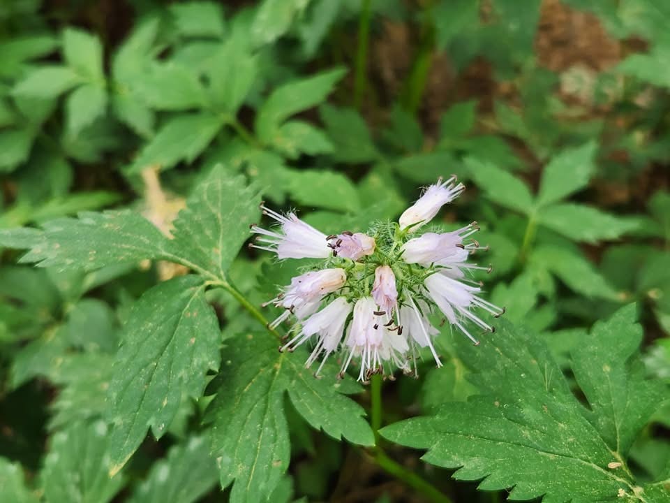 Heart - leaf Foamflower (Tiarella cordifolia) is identified by its heart-shaped, deeply lobed leaves, spreading from the base of the plant. The leaves are sharply toothed, and the plant has a clumping growth habit. In spring, it produces elongated clusters of small, frothy, white to pinkish flowers on slender, upright stems.