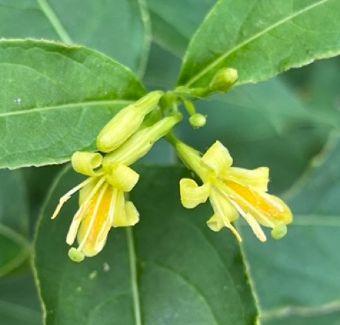 Up to 6 in long x 1 in wide, toothed, lance-shaped leaves with conspicuous veins that occur in pairs on the stem.