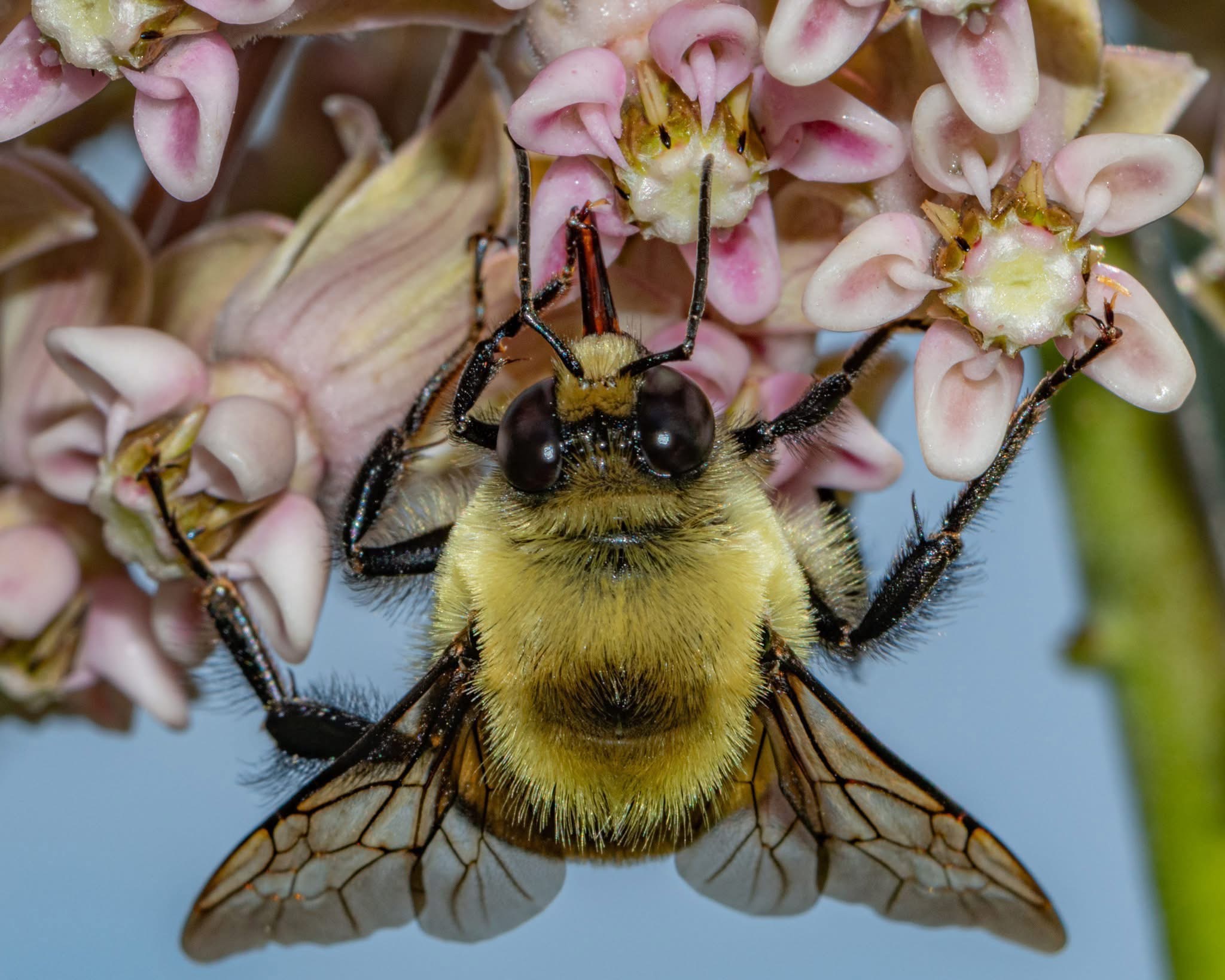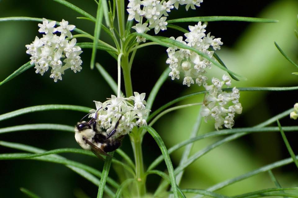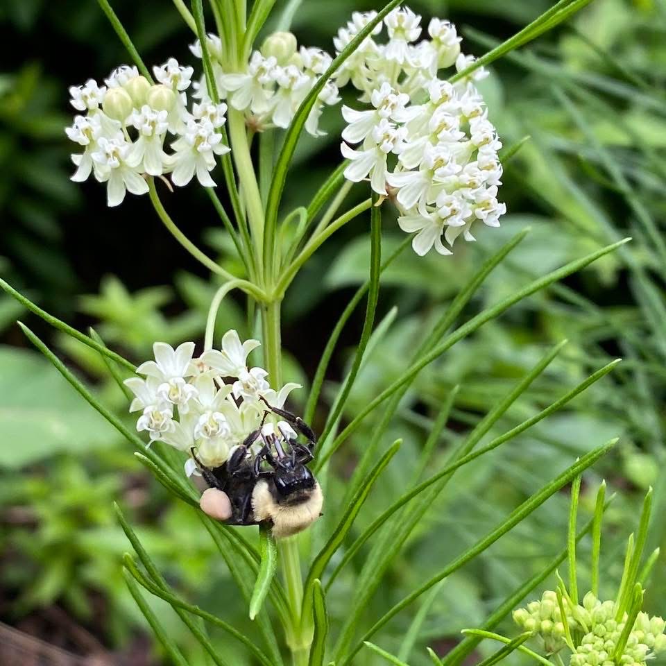 A Brown Belted Bumble Bee on Common Milkweed Flowers. Photo Credits: Bob Noble from The Ontario Native Plant Gardening Group on Facebook