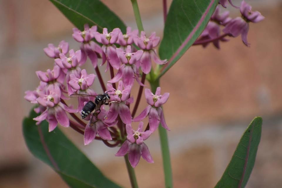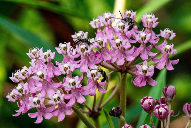 Small Carpenter Bees sipping nectar from the flowers on a Swamp Milkweed Plant. Photo Credits: Dave Keys (Christina Key’s Dad) from The Ontario Native Plant Gardening Group on Facebook