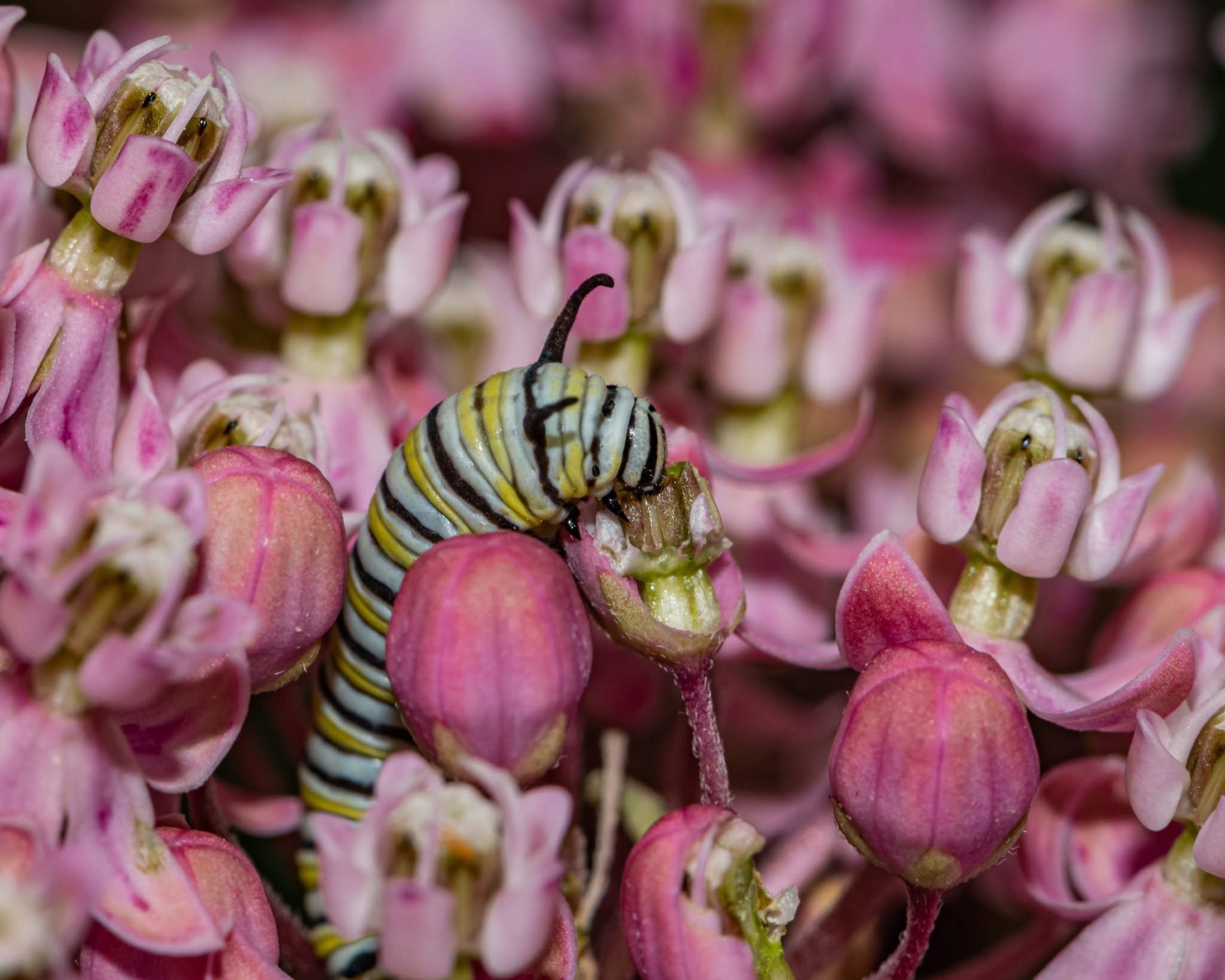 Caterpillars of monarch butterflies and milkweed tussock moths feed on the leaves of various milkweed species, and the plant provides shelter during their metamorphosis.