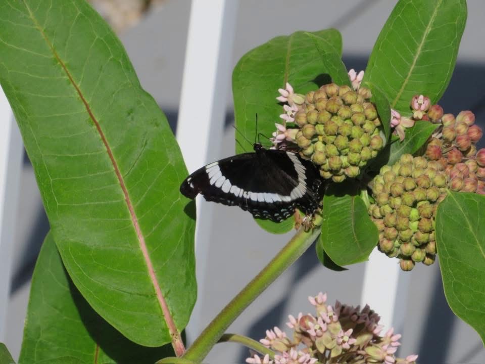 A White Admiral Butterfly on Common Milkweed flowers. Photo Credits: Pam Hiley from The Ontario Native Plant Gardening Group on Facebook