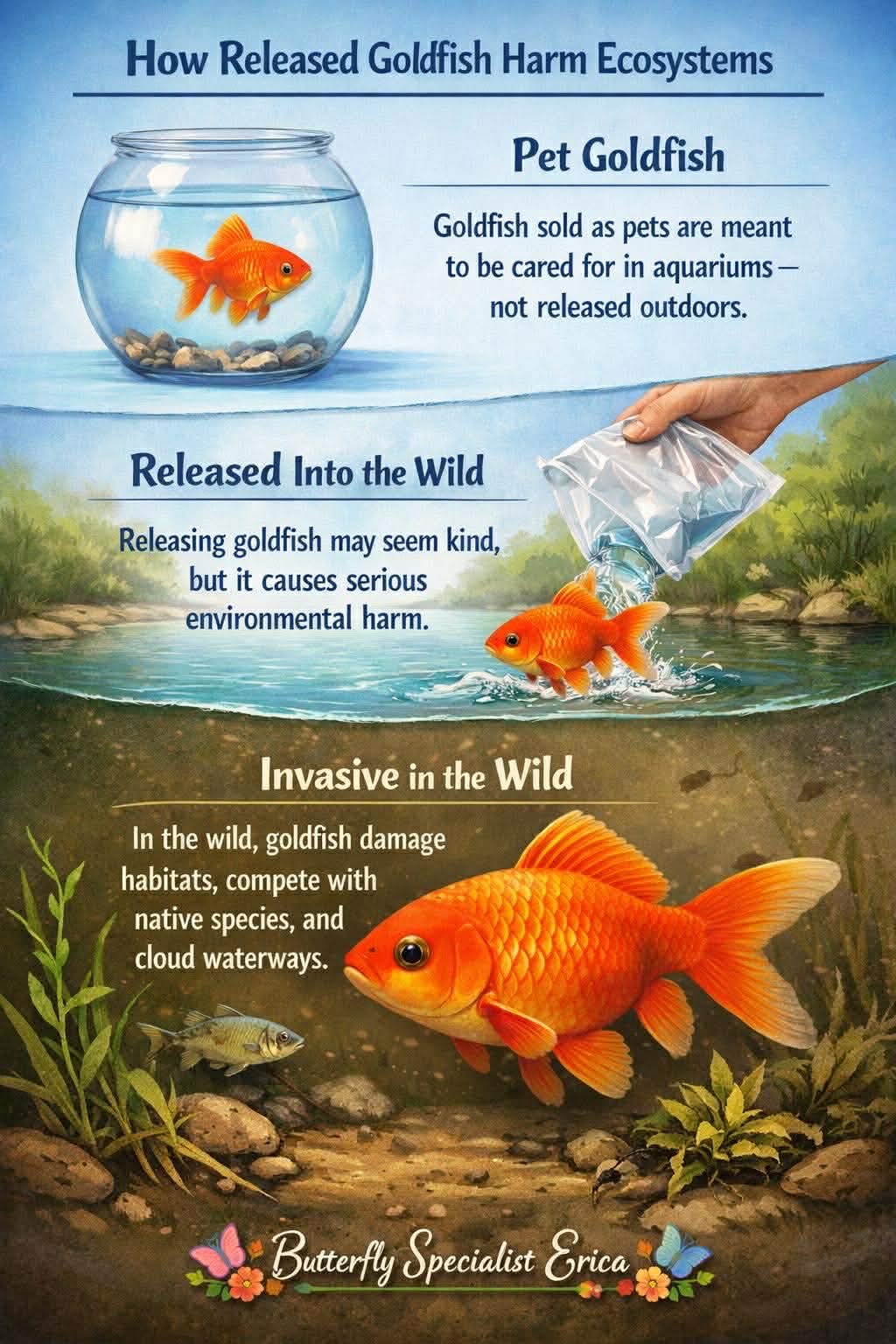 Understanding this misunderstanding is an important first step in protecting our ecosystems. By learning why releasing goldfish is harmful even when done with compassion, we can begin to make choices that are truly kind, both to individual animals and to the natural environments they may affect.