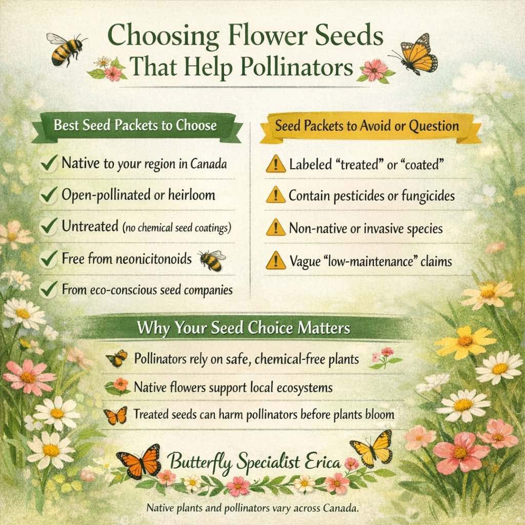 By learning to read seed packets carefully, choosing responsible suppliers, and prioritizing native plants, gardeners become active participants in conservation. Every milkweed planted, every invasive species prevented, and every conversation shared with a neighbour helps rebuild the ecological connections that pollinators depend on.
