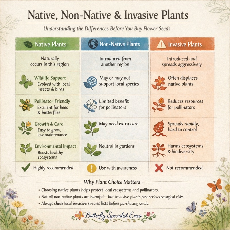 Going forward, take a few moments to review seed packets more carefully, prioritize regionally native plants, and seek out reputable native plant suppliers when possible. Keeping notes on what performs well in your garden and what doesn’t can also help guide future planting decisions. Each season offers a new opportunity to refine and improve.