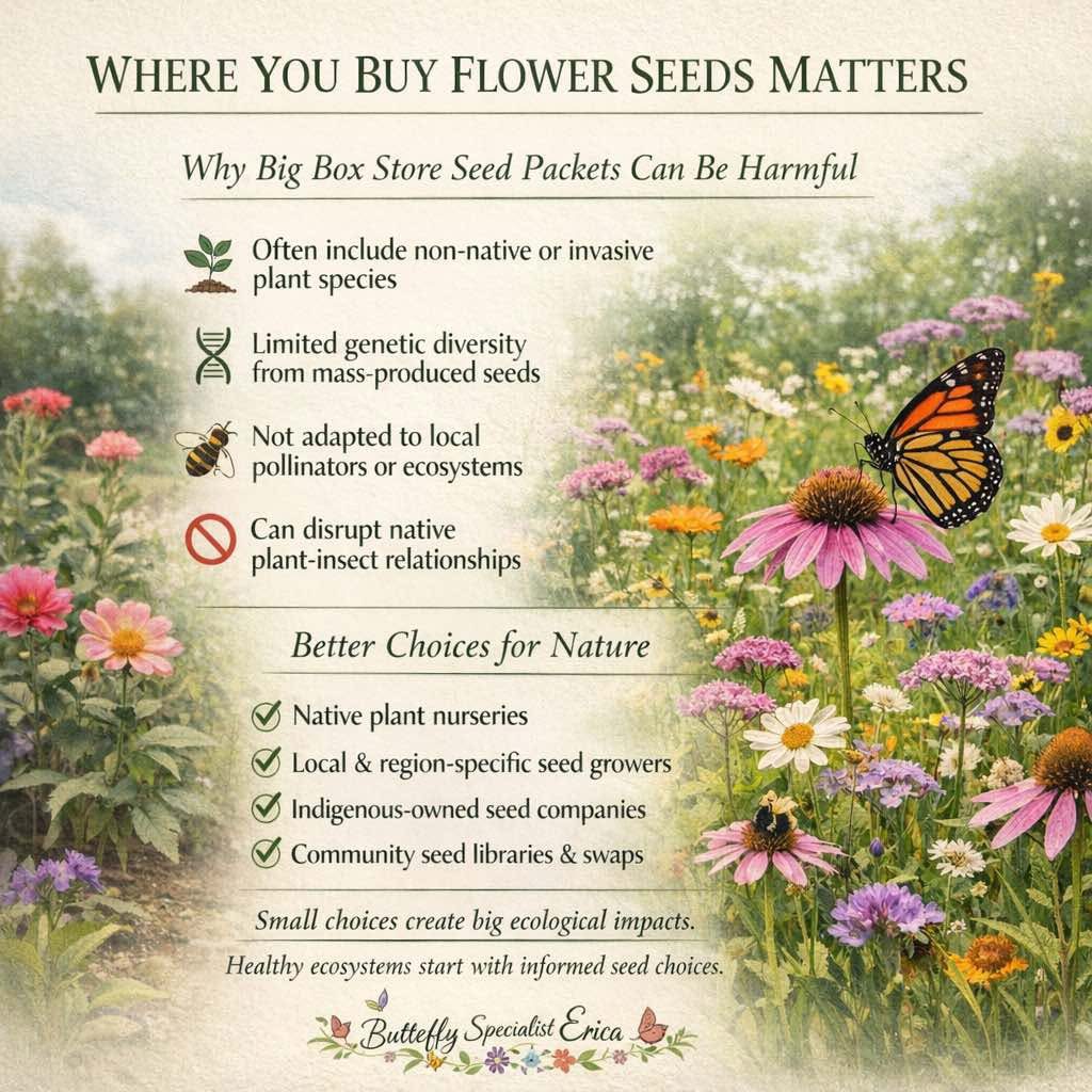Choosing better alternatives to big box store seed packets helps protect local ecosystems by prioritizing plants that truly belong in the region. Native-focused seed sources are more likely to offer species that support the full life cycles of butterflies, moths, and native bees, rather than just providing short-term nectar. By purchasing from conservation-minded growers, gardeners reduce the risk of introducing invasive plants and help strengthen biodiversity where they live.