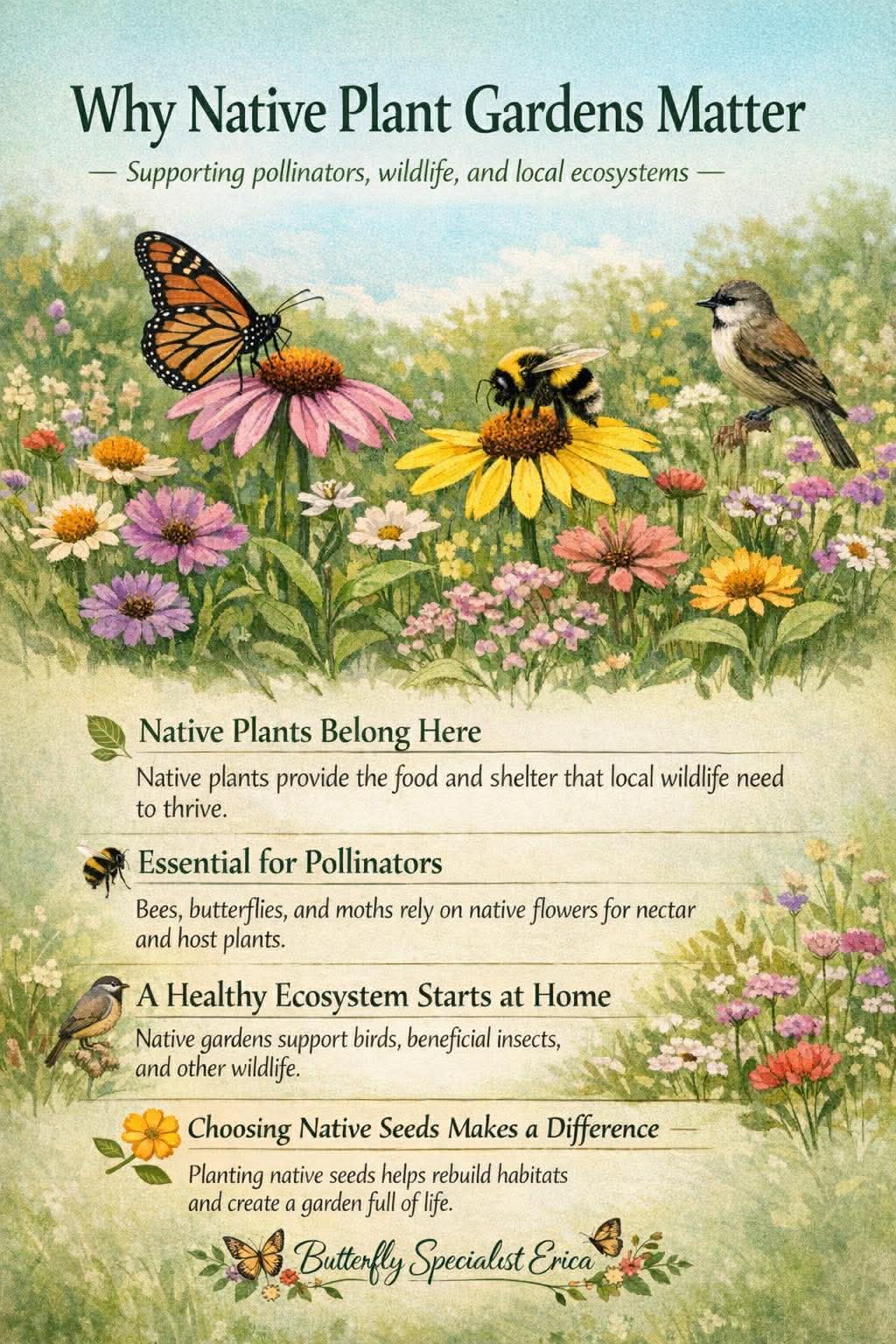 ๐ Encouraging note: Every native plant added to a garden helps rebuild habitat.